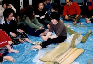 ★ 日 時:2002年1月19日(土) 場 所:水海道市立生涯学習センター(茨城県) 主 催:いばらき園芸療法研究会 『園芸療法のためのクラフト講座(い草を使った草履作り)』 |